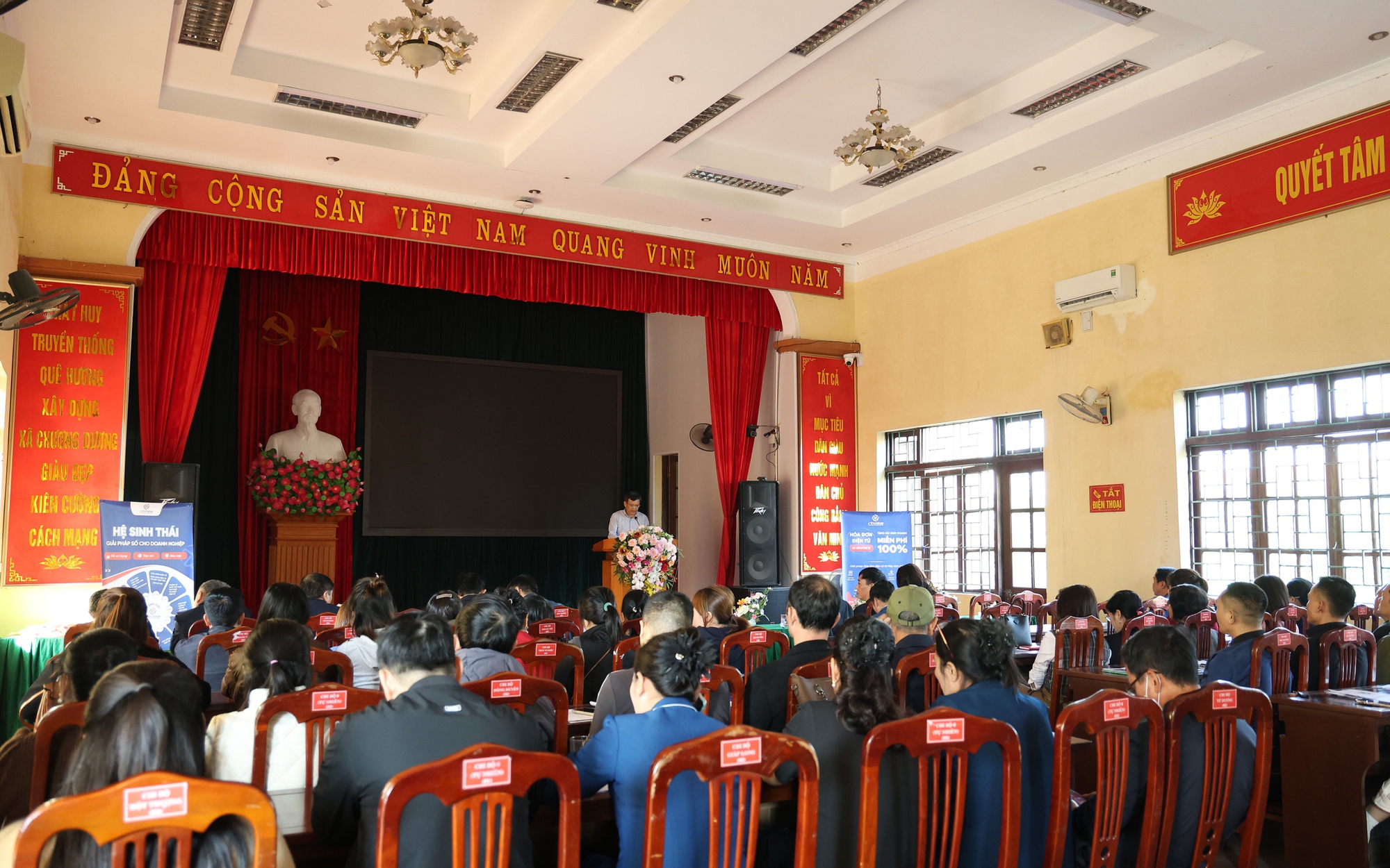 Dự hội nghị có Đồng chí: Từ Đức Mạnh – UVTV, Phó Chủ tịch Thường trực UBND xã; đại diện Lãnh đạo Phòng Kinh tế; Ban Lãnh đạo Thuế cơ sở 19; Đại diện đơn vị cung cấp giải pháp phần mềm quản lý thuế, một số ngân hàng thương mại; cùng đại diện các hộ kinh doanh trên địa bàn xã.
